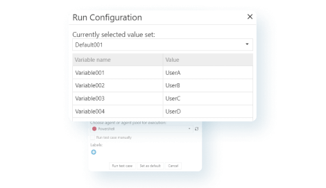 The PowerShell integration can utilise test case variables stored in aqua